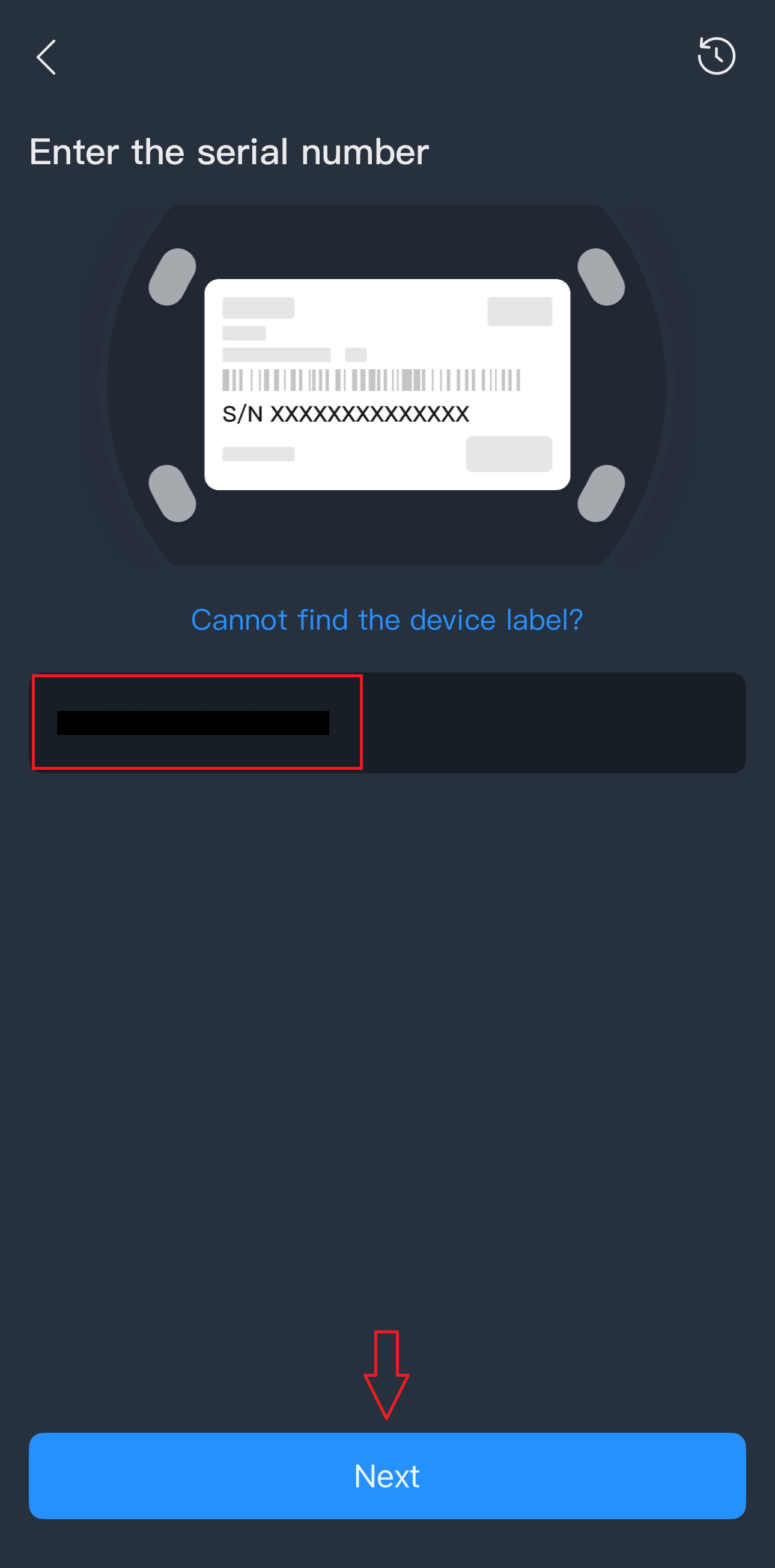 2.) Allow camera permissions if you’re scanning the QR code or tap SN at the bottom right corner to enter the serial number manually.