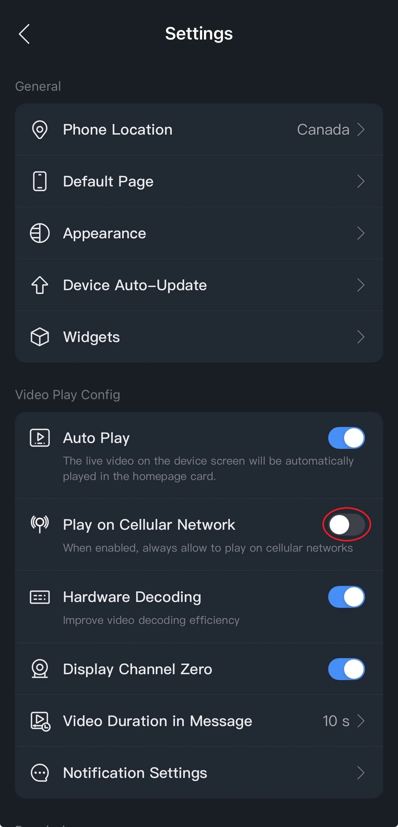 3.) Under Play on Cellular Network, tap the switch to enable or disable data use for DMSS.