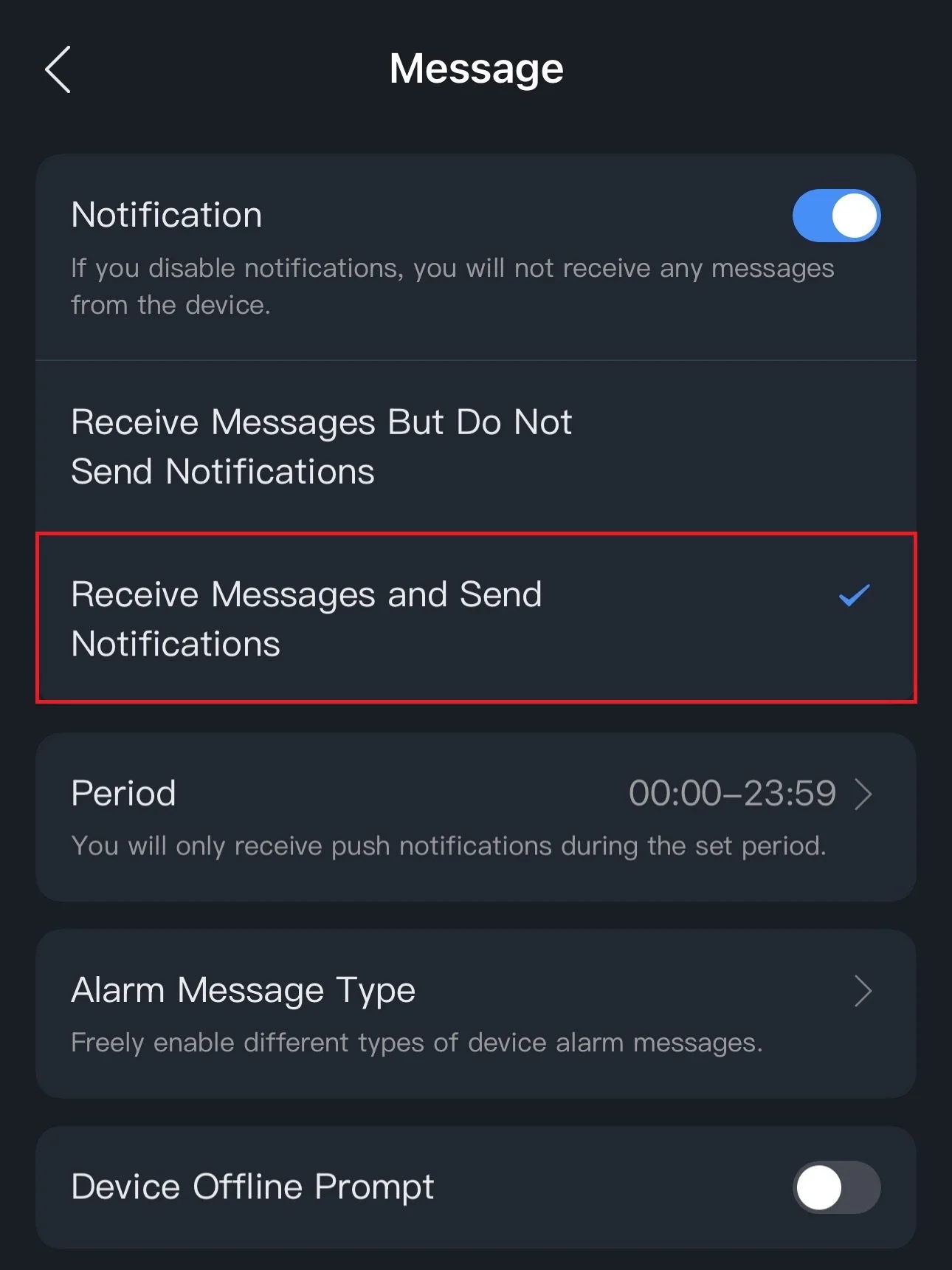 3.) Tap on the switch to enable push notifications. Ensure “Receive Messages and Send Notifications” is checked off.