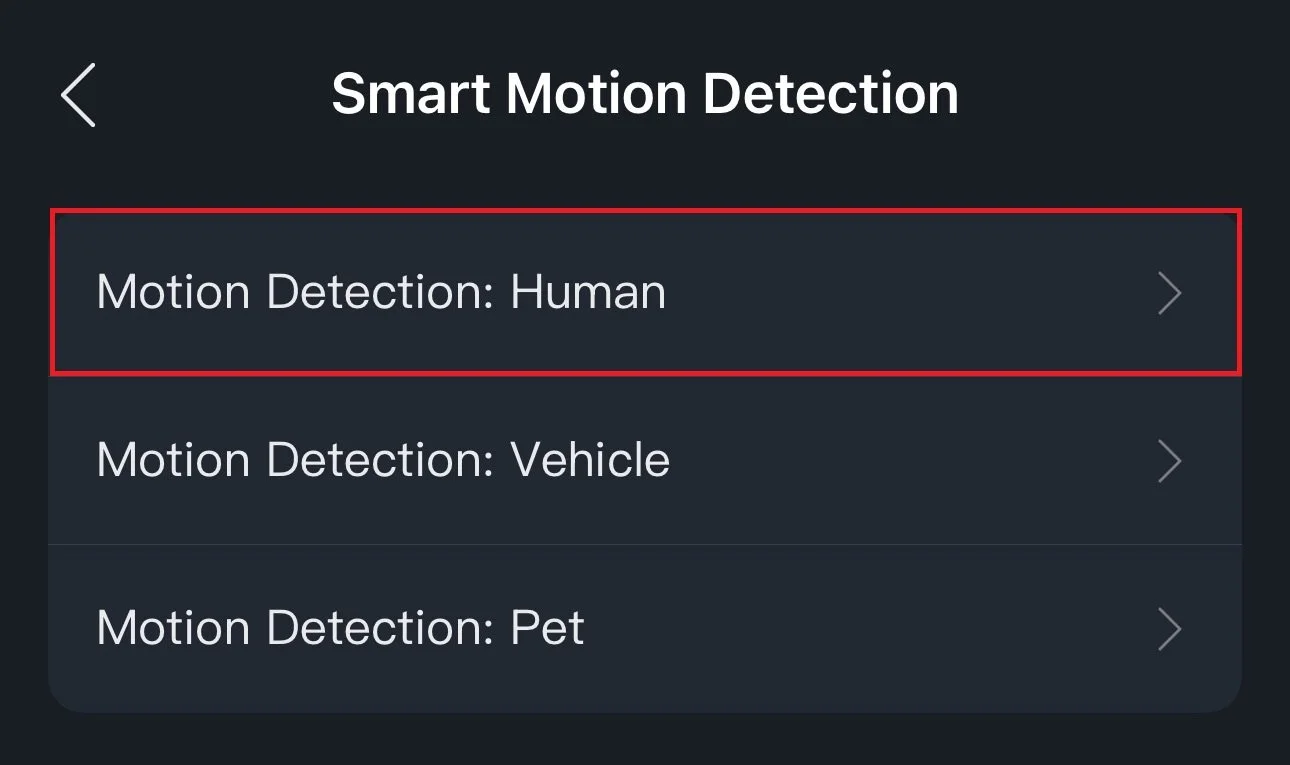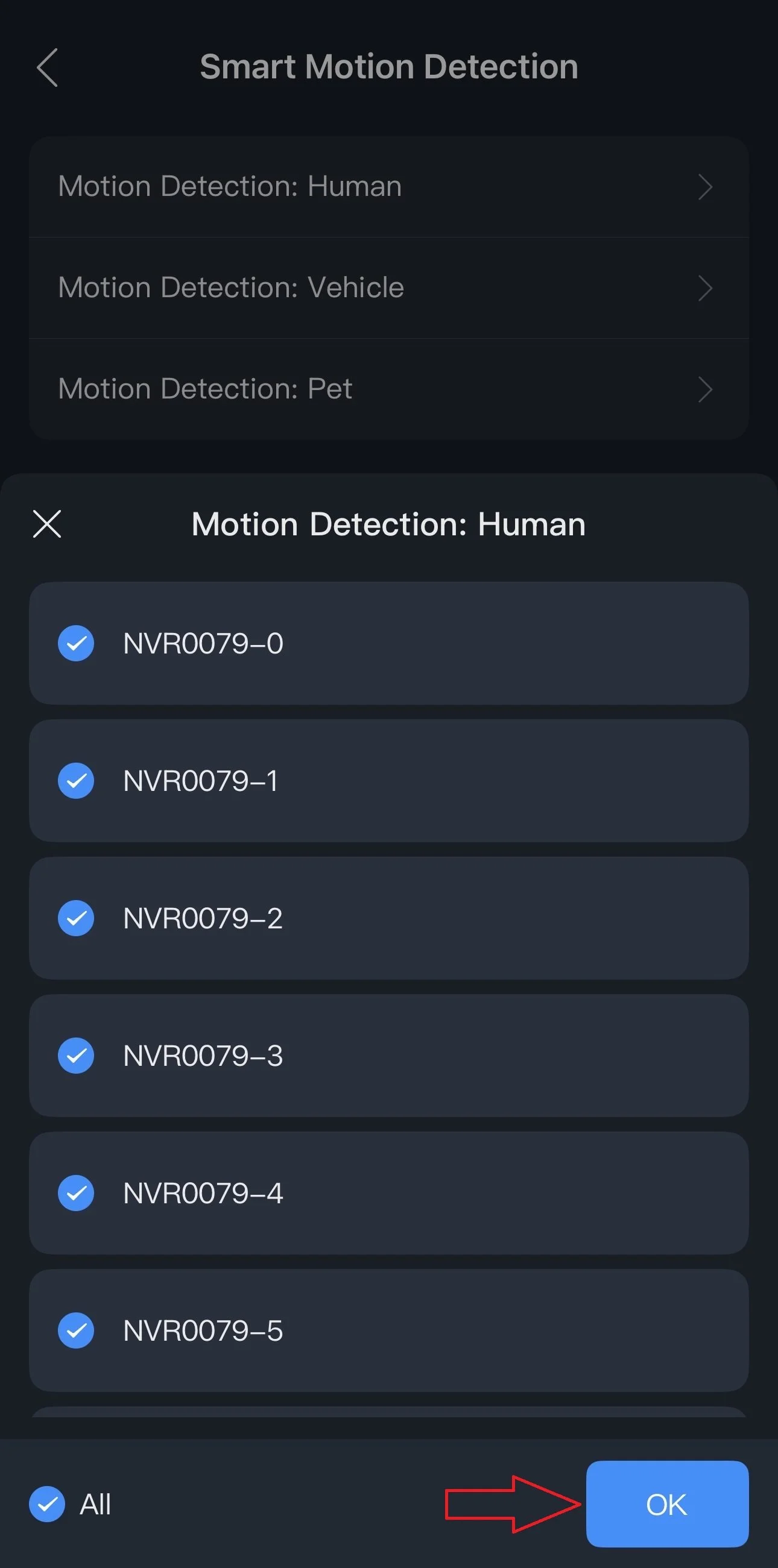 6.) Go to Motion Detection: Human then select your desired cameras and press OK.