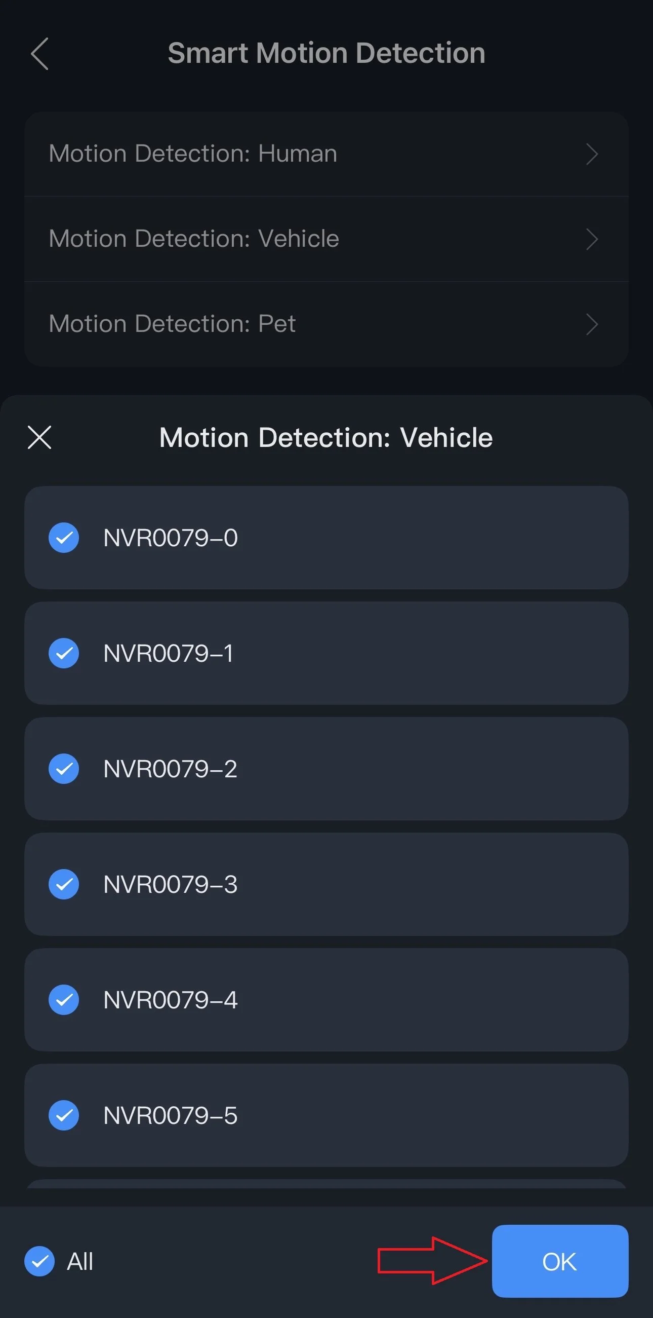 7.) Go to Motion Detection: Vehicle then select your desired cameras and press OK.